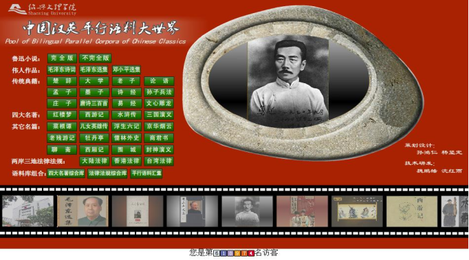水平标志:建立“中国汉英平行语料库大世界”,其中收录 “鲁迅小说汉英平行语料库”、“中国法律法规汉英平行语料库”以及《红楼梦》《老子》《论语》等多个中国经典作品语料库等,并于2022年建立“王阳明《传习录》汉英日多语平行语料库”。